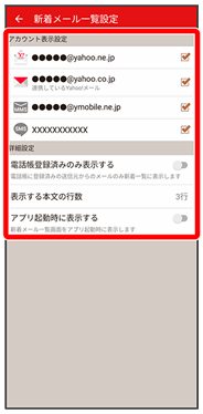 • ↓新着メール一覧設定画面でアプリ起動時に表示する