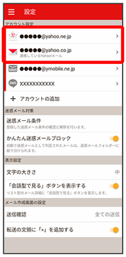 | アカウントの別表示 | Y!mobile メールと連携しているYahoo!メールを個別に表示させるかどうかを設定します。 |