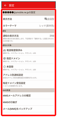 | 指定ドメイン | 指定ドメインに登録した相手からメールを受信したときの通知方法を設定します。 | |