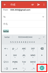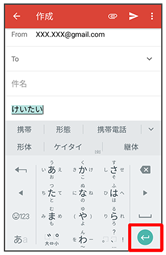 - 改行入力(文字入力中は、文字確定/ロングタッチで、入力欄移動/絵文字入力)