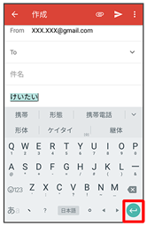 - 「ケータイ配列」、「QWERTY」、「Godan キーボード」を切り替えるには、キーボード表示中に