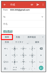 - 文字を入力するたびに、入力した文字で始まる変換候補がソフトウェアキーボード上部に表示されます。