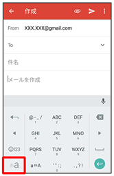 をタップすると、小文字⇔大文字を切り替えることができます。タップするたびに、小文字⇔大文字が切り替わります。 - キーをくり返しタップせず、キーをロングタッチしたときに表示されるキー入力ガイドを利用して文字を入力することもできます。詳しくは「フリック入力について」を参照してください。