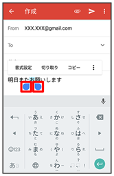 をタップしたあと、次の文字を入力します。 - キーをくり返しタップせず、キーをロングタッチしたときに表示されるキー入力ガイドを利用して文字を入力することもできます。詳しくは「フリック入力について」を参照してください。