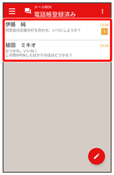 - 電話帳に登録済みの相手とのメールを確認するときは、電話帳登録済みをタップします。