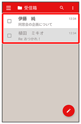 - 受信箱画面で下にドラッグ/フリックしても新着メールの確認ができます。