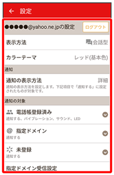 | 指定ドメイン | 指定ドメインに登録した相手からメールを受信したときの通知方法を設定します。 | |