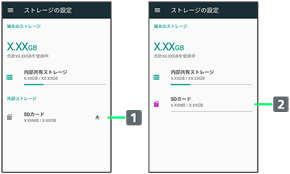本機では、データの保存先として、「内部ストレージ」と「SDカード」が利用できます。