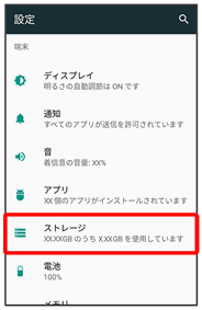 また、システムデータやアプリケーション、撮影した静止画や動画などのデータを保存する場所として、内部ストレージが利用できます。