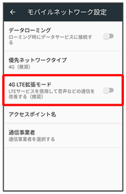 VoLTEは4Gサービスを利用します。本機の4Gサービスが無効になっているときは、利用できません。VoLTEが利用できないときは、次の操作で4Gサービスが有効(