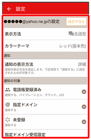 | アカウントの別表示 | Y!mobile メールと連携しているYahoo!メールを個別に表示させるかどうかを設定します。 |
