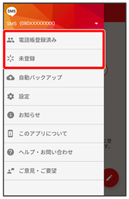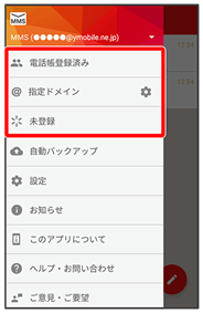 新着のMMS/SMSを受信すると、新着メッセージの通知と、通知アイコンが表示されます。