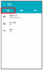 | 写真サイズ | 静止画のサイズを切り替えます。 | |