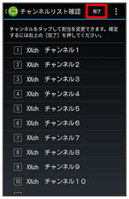 チャンネルのスキャンが始まり、終了するとチャンネルリスト確認画面が表示されます。