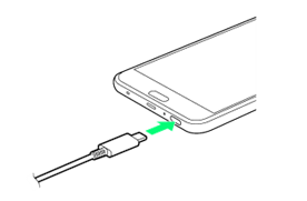 - お使いになるACアダプタの取扱説明書を参照してください。ここでは、ACアダプタ(USB Type-C Quick Charge 3.0対応)[ZSCAZY](Y!mobile Selection USB Type-C急速充電ACアダプタ[Y1-AC17-TCQC])を使用して充電する方法を例に説明します。