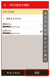 - 宛先を入力するをタップすると、宛先を直接入力できます。また、入力した宛先を電話帳に登録することもできます。