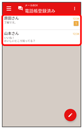 - 電話帳に登録済みの相手とのメールを確認するときは、電話帳登録済みをタップします。