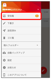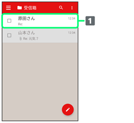 - 受信箱画面でメールの