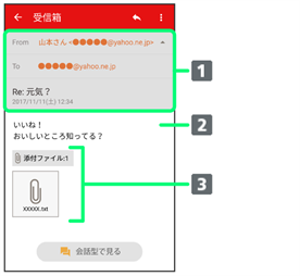 - 受信箱画面でメールをタップ