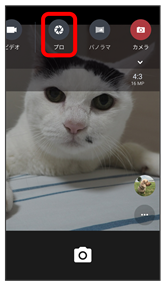| プロ | 撮影機能を細かく設定して、RAW形式の写真を撮ります。 撮影機能について詳しくは、「撮影画面(プロ)の見かた」を参照してください。 |