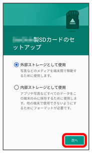 内部ストレージとして使用するには、SDカードのフォーマット(初期化)が必要です。