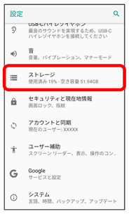 データの保存先として、内部ストレージとSDカードを利用できます。