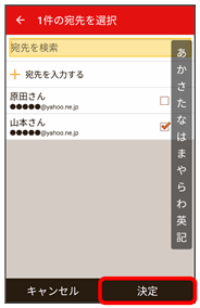 • 宛先を入力するをタップすると、宛先を直接入力できます。また、入力した宛先を電話帳に登録することもできます。