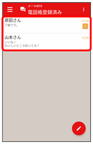 • 電話帳に登録済みの相手とのメールを確認するときは、電話帳登録済みをタップします。