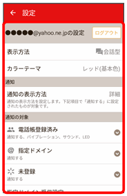 | アカウントの別表示 | Y!mobile メールと連携しているYahoo!メールを個別に表示させるかどうかを設定します。 |