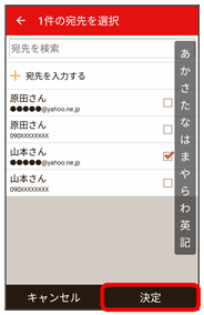 • 宛先を入力するをタップすると、宛先を直接入力できます。また、入力した宛先を電話帳に登録することもできます。