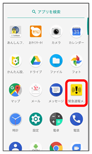 ステータスバーに通知アイコンとメッセージが表示され、緊急地震速報/津波警報、災害・避難情報個別の警告音およびバイブレータでお知らせします。