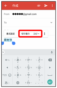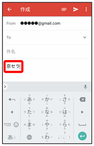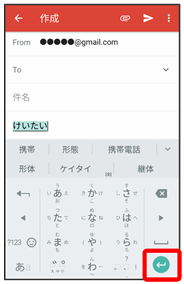 ケータイ配列で入力するとき、キーを上下左右にフリックすることで、キーを繰り返しタップすることなく、入力したい文字を入力できます。キーに触れると、フリック入力で入力できる候補が表示されます。入力したい文字が表示されている方向にフリックすると、文字が入力されます。