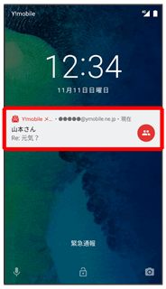 新着のMMS/SMSを受信すると、新着メッセージの通知と、通知アイコンが表示されます。