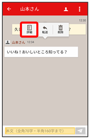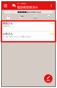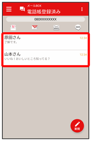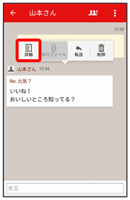 | 添付ファイルあり。タップすると添付ファイルの保存ができます。SMSの場合は表示されません。 |