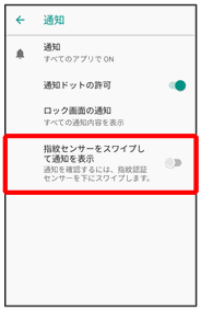 指紋センサーを利用して通知パネルを表示できるように設定する