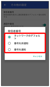 - ネットワークのデフォルト/番号を非通知/番号を通知