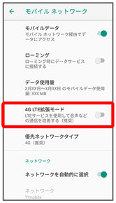VoLTEは4Gサービスを利用します。本機の4Gサービスが無効になっているときは、利用できません。VoLTEが利用できないときは、次の操作で4Gサービスが有効(