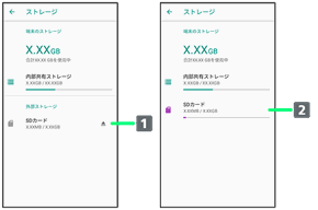 本機では、データの保存先として、「内部ストレージ」と「SDカード」が利用できます。