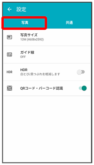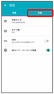 | QRコード・バーコード認識 | 撮影時、QRコードやバーコードを認識させるかどうかを設定します。 |
