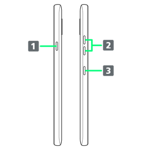| 画面の消灯/点灯に使用します。 電源キーを長押しすると、スクリーンショットの撮影、電源を入れる/切る、再起動を行えます。電源キーを2回押して、カメラを起動させるショートカットキーとして使うこともできます。 |