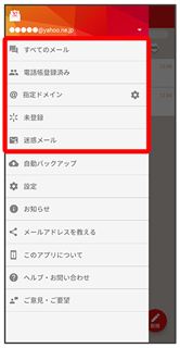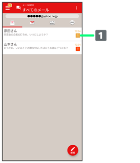 - 相手を限定せずに、迷惑メール以外の受信したすべてのメールを確認するときは、すべてのメールをタップします。