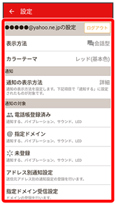 | 指定ドメイン | 指定ドメインに登録した相手からメールを受信したときの通知方法を設定します。 | |