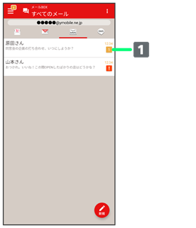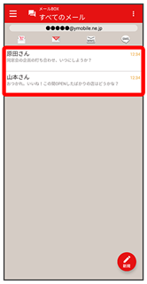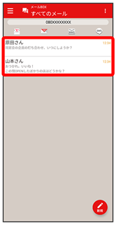 - 相手を限定せずに、迷惑メール以外の受信したすべてのメールを確認するときは、すべてのメールをタップします。