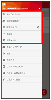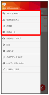 - すべてのメール/電話帳登録済み/未登録/迷惑メール