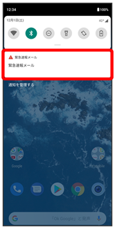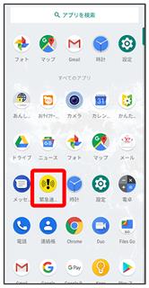とメッセージが表示され、緊急地震速報/災害・避難情報個別の警告音およびバイブレータでお知らせします。