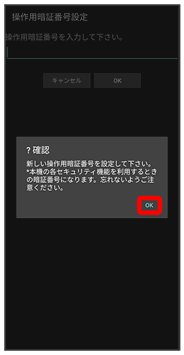 操作用暗証番号が設定されます。