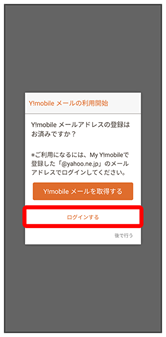 • Y!mobile メールアドレスを作成する場合は、Y!mobile メールを取得するをタップして画面の指示に従って操作してください。