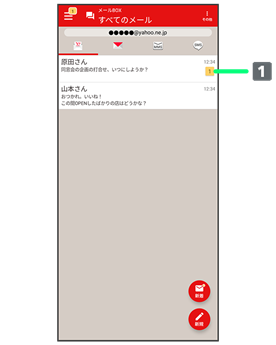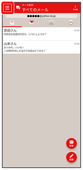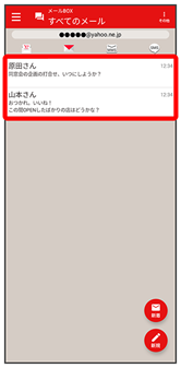 • 相手を限定せずに、迷惑メール以外の受信したすべてのメールを確認するときは、すべてのメールをタップします。