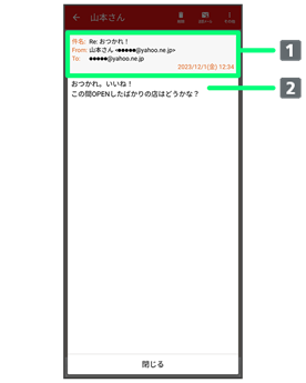 • 添付画像のときは、メール送受信画面で画像をタップしても画像の保存画面が表示されます。