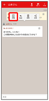 • メール送受信画面で、宛先グループ(相手)名をタップ